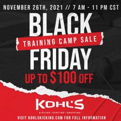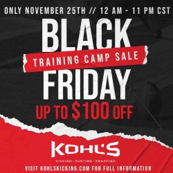 This Black Friday, Kohl's Professional Camps is offering $75 off all 1-Day Training Camps and 2-Day Training Camps for kickers, punters, and long snappers! We are also offering $25 off of mini camps and small group sessions that are listed in the links below.