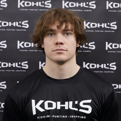 Cork recently competed at the Kohl’s 2021 Winter Showcase event. He made 10 points during the field goal charting phase of camp and hit multiple 63 yard kickoffs with over 3.8 seconds of hang time. Cork competed at the Kohl’s National Scholarship Camp in July of 2020. He had a solid overall camp and this upcoming fall will be important for him to continue to grow and develop his technique to be ready for the next level. At the 2019 December Showcase camp, Cork charted in both field goals and kick offs. During the field goal portion, he scored 4 points out of a possible 11. Being a 2022, the time for development is upon him and over the next six months and more, the leg strength and explosiveness will come. On kick offs, his big ball was 54 yards with 3.22 seconds of hang time.