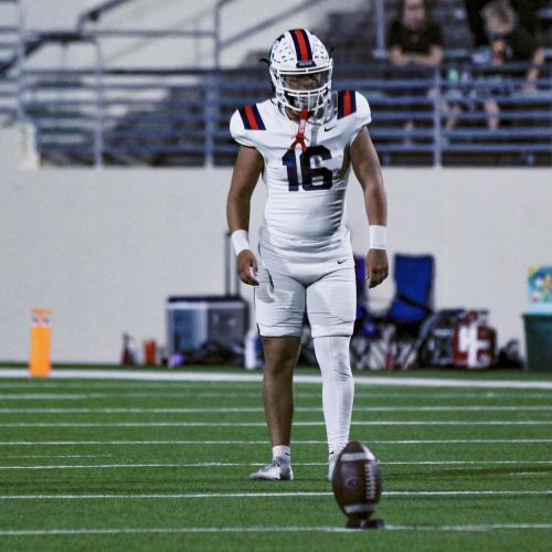 Powerful kickoff leg with verified Texas 5A Division I depth and scoring volume. Consistent PAT performer with clean operation mechanics and dependable game accuracy. Displays strong composure, durability, and competitive consistency against top-level Texas high school competition. Projects as a college-ready specialist with continued upside.