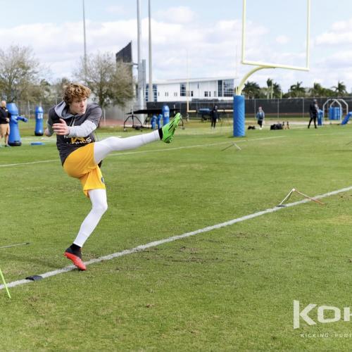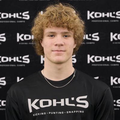 Hartmann recently competed at the 2023 Kohl’s Midwest Winter Showcase. He was able to command the football well, putting up 8 points on the field goal session. During the kickoff charting, Hartmann struck his big ball a distance of 58 yards with a hang time of 3.31 session. During the punt charting, he struck numerous balls 40+ yards. Hartmann also competed in the 2023 Kohl's National Scholarship Showcase. He scored 15 points on the field goal charting. In the kickoff charting, Hartmann earned a solid overall score of 88.12, with his longest kick reaching 60 yards and a hang time of 3.48 seconds. During the punting section, he had an overall score of 87.73, and his longest punt traveled 47 yards with a hang time of 4.09 seconds. Hartmann also competed at the 2023 Kohl's Future Stars Invitational Camp. He charted one point in the field goal charting and was able to connect on big ball of 65 yards with 3.09 seconds of hang time. He charted several 40+ yard punts including a big ball of 44 yards with 4.18 seconds of hang time. Hartmann competed at the 2022 Kohl's Midwest Winter Showcase Camp, his first Kohl's ranking event. He displayed a controlled approach throughout the field goal charting, finishing with 7 points. He then showed his abilities in his kickoffs, hitting a big ball of 62 yards with 3.18 seconds of hang time. Hartman is a talented combo specialist that will be great to watch over the next year!