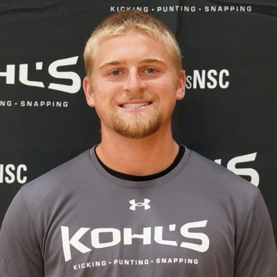 Moore recently punted at Kohl’s National Scholarship Camp in July of 2025. He scored 107.87 points during the three charting sessions held at camp. Moore showed the leg strength and overall talent needed to play early in college! Moore is an excellent Punting prospect who showed elite-level leg talent at both the 2025 Kohl's Midwest and Southern Spring Showcase. His "A" ball is elite and he is a scholarship level talent. He scored 108.09 and 106 points collectively. He has excellent fundamentals and is an elite punting prospect. Moore competed at the 2025 Underclassman Challenge and scored 104.99 points and won a punt competition at camp! On the cold rainy day in Atlanta at the December 2024 Southern Showcase Camp he still put up an impressive score of 104.39 points in punting. He had another impressive showing at the July 2024 Kohl's National Scholarship Camp. He scored 109.63 points in punting at camp. He was also competitive in the final punt competition. Moore has the athleticism to be a D1 punter in the coming year! At Kohl's UC Challenge, he was the top charted punter in the 2026 class and showed superior leg strength and coordination. He scored 107.84 points in the two punt charting sessions. His "pop" is excellent and with continued emphasis on keeping his steps short and consistent, he will distance himself from the rest of his class even more.