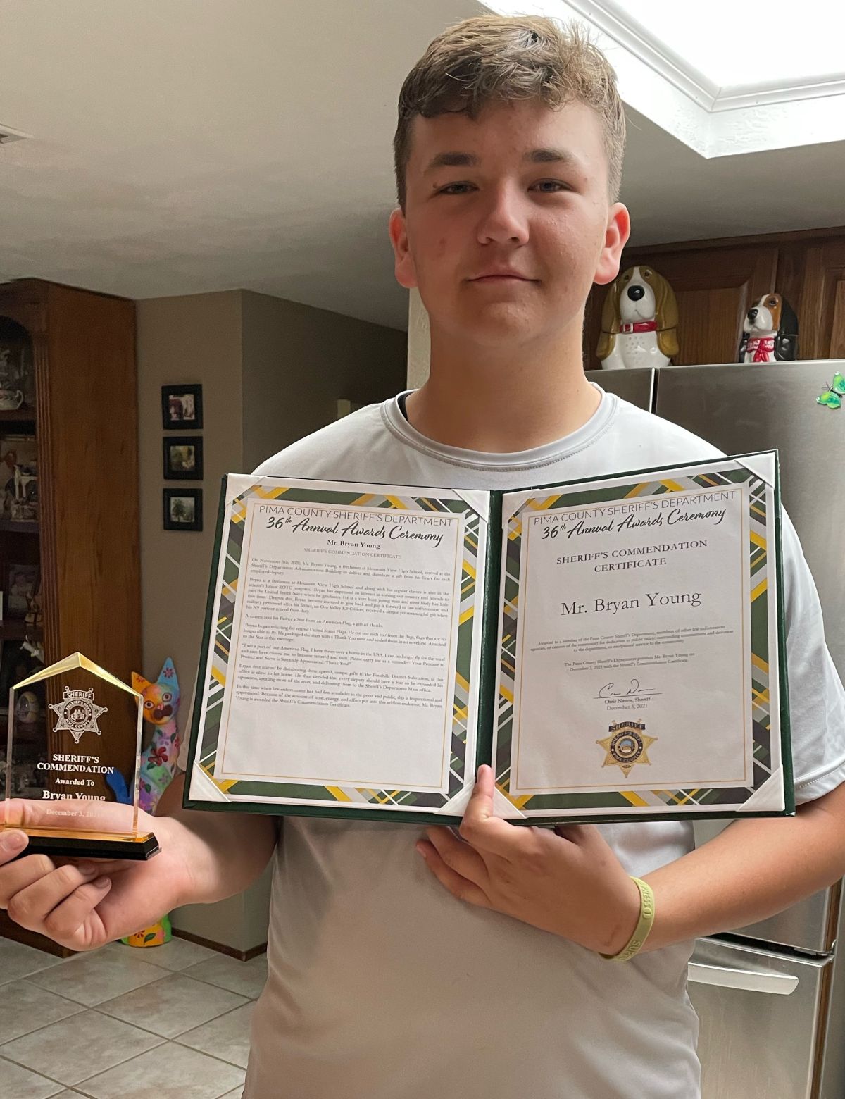 Hello, my name is Bryan, I am a senior at Mountain View high school in Tucson, AZ. I made varsity as a sophomore for OT and DT, my jersey # was 73 (for videos). I have an Instagram account, the.duke24, that has a lot of my snapping that I just started, I have a Youtube, account with the same name. I also have a Twitter account. I tried long snapping after practice one day last season and loved it instantly. I challenged the varsity starting long snapper for the position and earned the starting position for the rest of the season. I only have a couple of videos where you can see the snap from last year (when I started snapping) and I posted one of me pulling to block. I plan on getting better videos this season. I am the starting long snapper and defensive end this year, jersey # 51 (for videos). I am training constantly to be the best I can be. I love football, I am a hard worker and very coachable. I also do shotput and disc for track. I believe that being real on and off the field is important for your character. I am a big advocate for military and law enforcement. I have traveled all over Arizona doing public speaking with our military and law enforcement. I have earned many awards including, more recently, I was given the Pima County Sheriffs Commendation Award. I am very family oriented on and off the field as well, I feel everyone needs support. I have also been taken extra classes online, I have already fulfilled the history, government and economic requirements for high school.