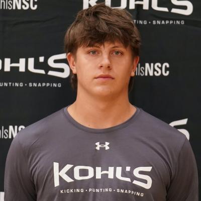 Stimson had a solid showing recently at the 2024 Kohl's National Scholarship Camp. He is back and nearly recovered from his injury that kept him out. He is an athletic prospect who moves well and creates excellent power into his attempts. He purely punted at camp, and he flashed an excellent "A" ball. Continuing to build confidence in the release of the ball on his drop should help him continue to develop. His overall punt score was 95.36 which includes a big ball of 52 yards with 4.20 seconds of hang time. Stimson showcased his talents at the 2023 Kohl's National Scholarship Camp. He competed in all three disciplines at camp and had another strong overall showing. He scored 15 combined points in the field goal charting and scored 96.47 points in the kickoff charting. He connected with some excellent punts in charting sessions of camp and connected with a big ball of 55 yards with 4.06 seconds of hang time. His overall score on punts at camp was 93.08.