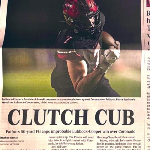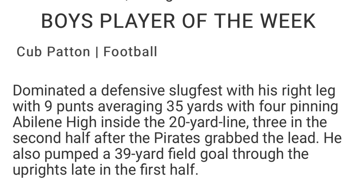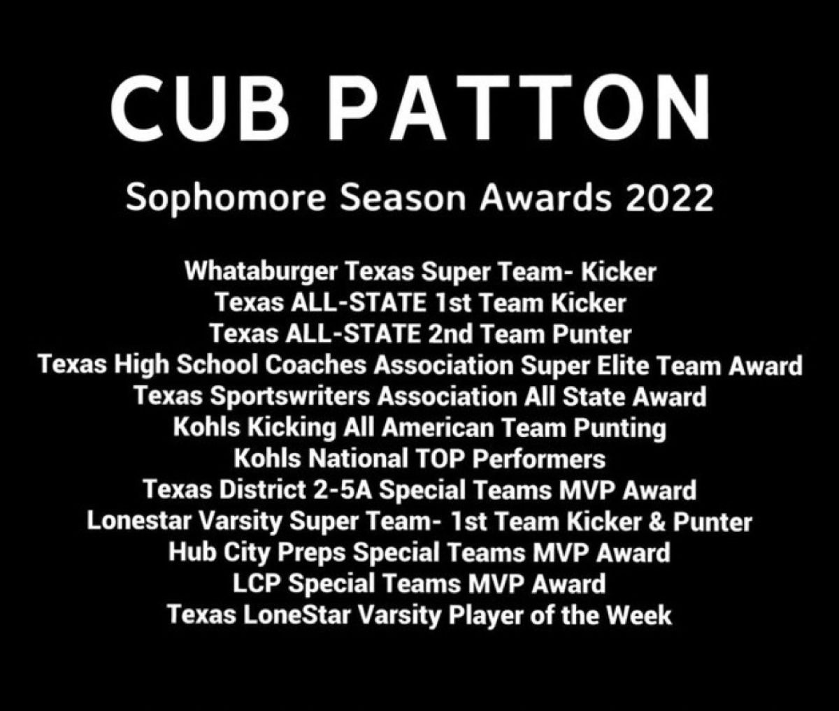 • Lone Star Varsity Player of the Week 5- 50 YARD FG for the WIN! Sophomore Season