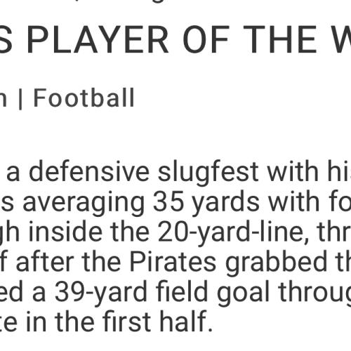 • LCP Special Teams MVP Week 7 Sophomore Season