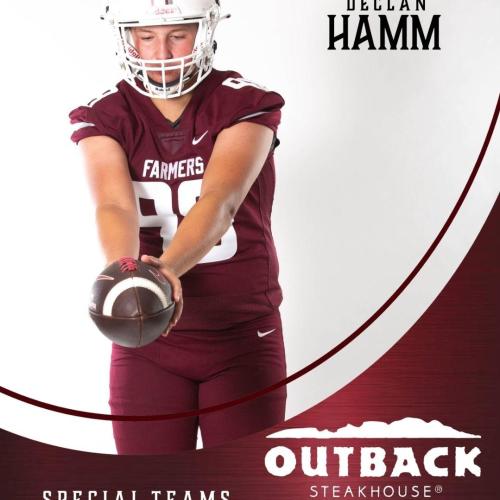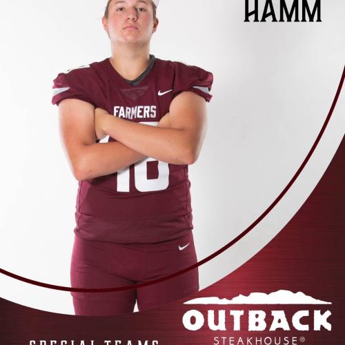 Hamm recently kicked and punted at Kohl’s National Scholarship Camp. He scored 20 points on field goals, 105.7 points on kickoffs, and 103.53 points on punts at the camp in July of 2025. Hamm has shown the leg strength and overall consistency needed to play in college. Hamm had another excellent showing at the 2025 Kohl's Texas Spring Showcase Camp. He was impressive in the drill work and the charting portions of camp. His overall score was 108.99 in the punt charting which includes a big ball of 58 yards with 4.64 seconds of hang time. He scored 6 points in the field goal charting portion of camp. Hamm competed at the 2024 Kohl's Texas Fall Ranking Event. He was impressive in all three categories and shined brightest in the punt portion of camp. He has powerful hips and crushes some punts at camp. His overall score in the punt portion of camp was 103.14 which includes a big ball of 49 yards with 4.69 seconds of hang time. He scored 5 points in the field goal charting and produced a score of 86.80 in the kickoff portion of camp. Hamm came out to the 2024 Kohl's National Scholarship Camp. He scored 95.90 points on punts, 16 points on field goals, and 87.37 points on kickoffs. Hamm's field goal technique has improved over the last few months. He connected on a 46-yard punt with 4.28 seconds of hang time, and he demonstrated improved drop table consistency.