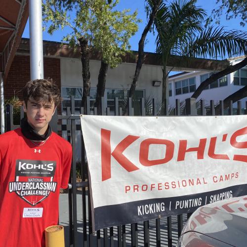 Zvada has competed at multiple Kohl's events in the course of 2021. He had a strong showing at the UC Challenge and National Scholarship Camp. He showed he has a D1 leg! Zvada's frame should allow him to put on good weight and continue to make gains on long FG's and KO's against other top players in the coming months. Zvada has made a noticeable improvement in leg speed since the winter and is easily able to drive the ball out of the end zone. His upside in the years to come is very high!