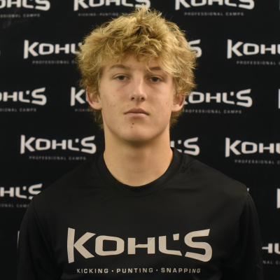 Ritchie recently competed at the 2023 Kohl's Eastern December Showcase. He once again displayed college level leg strength in all three disciplines at camp. He scored 8 points in the field goal charting and connected with a big ball of 57 yards with 2.93 seconds of hang time in the kickoff charting. His biggest charted punt at camp was 39 yards with 4.34 seconds of hang time. Ritchie had a solid overall showing at the 2023 Kohl's Future Stars Event. He showed improved refinement in his ball striking and his command of his body on contact. He scored 6 points in the field goal charting and connected on a big ball kickoff of 71 yards with 3.20 seconds of hang.