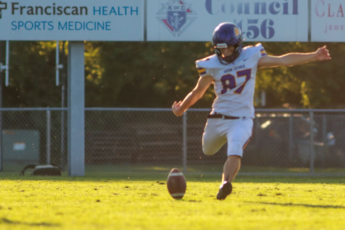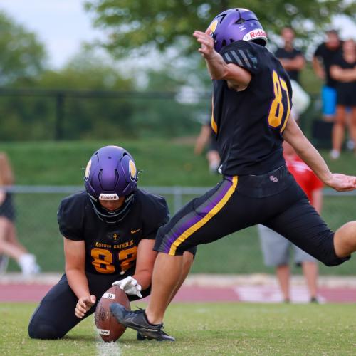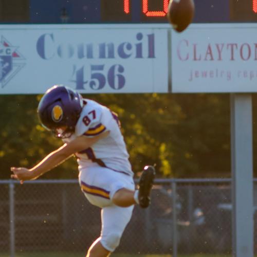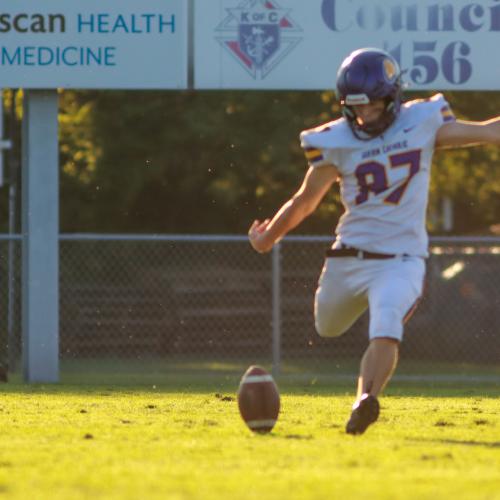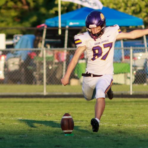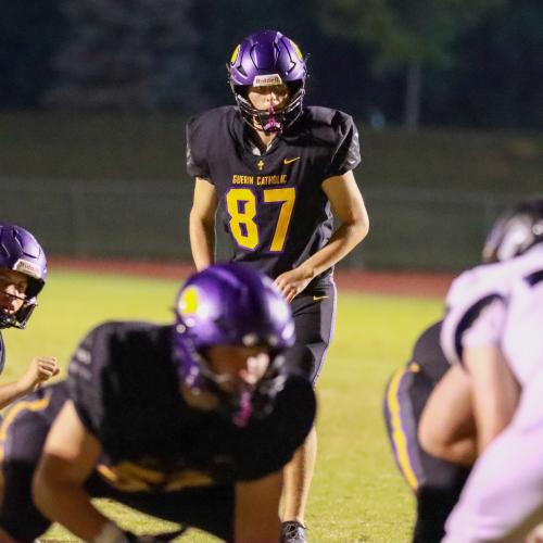 Evan Guenthner, 5'10", 172 lbs is a highly accomplished placekicker / kickoff specialist from Guerin Catholic High School (GCHS). With a powerful leg that is still developing combined with pinpoint accuracy, Guenthner is establishing himself as one of the most outstanding, consistent placekickers in the state of Indiana. Having focused his strength and conditioning on his kicking mechanics, combined with expert instruction, he has been able to move to top rankings with leg strength to boot field goals up to 55 yards.