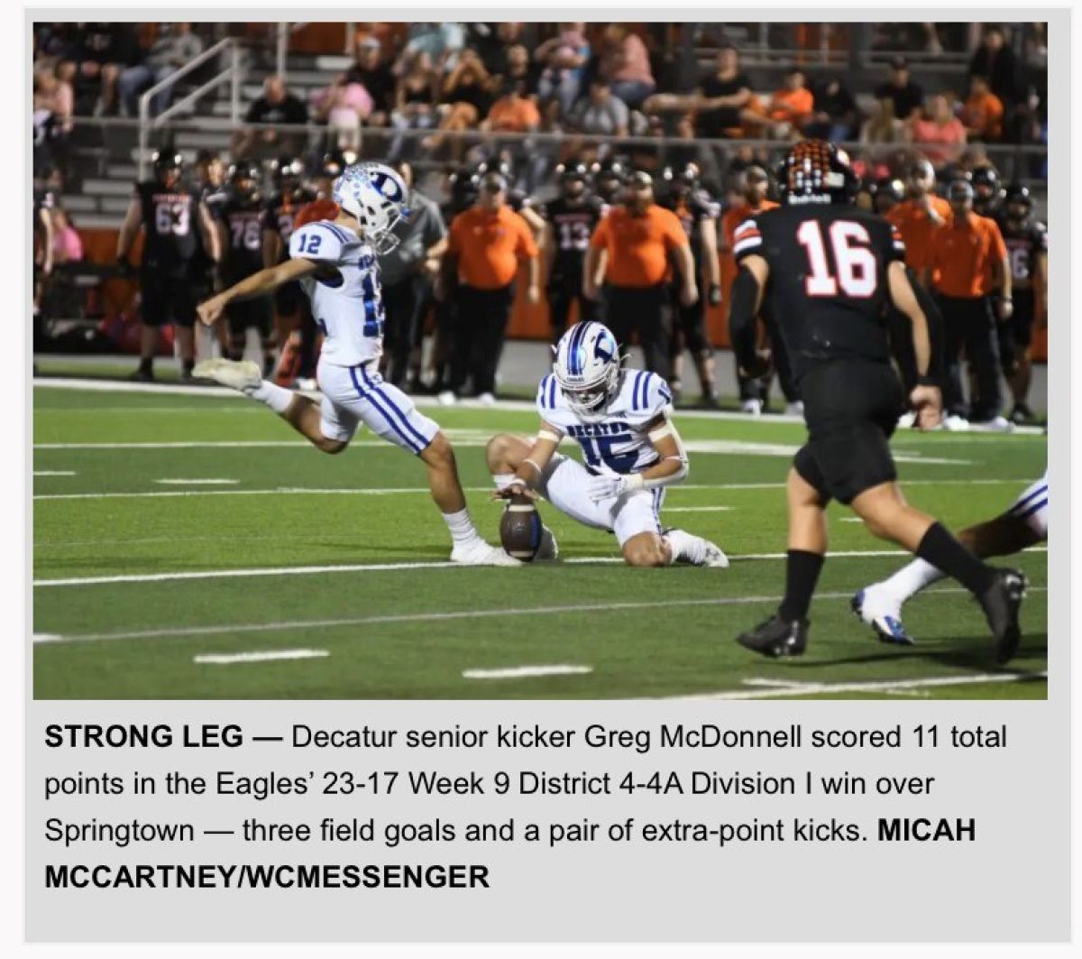 McDonnell competed at the 2024 Kohl's National Senior Challenge. He flashed both solid leg strength and command of his "A" ball at camp. He scored four points in the field goal charting and had an overall score of 96.05 in the kickoff portion of camp. His biggest charted kickoff was 63 yards with 3.46 seconds of hang time. McDonnell attended the 2023 Kohl's Texas Winter Showcase. He showed solid ball striking and above average leg speed. He scored 4 points in the field goal charting and connected with a big ball of 64 yards with 3.32 seconds of hang time. His overall score on kickoffs was 97.00. McDonnell competed at the
