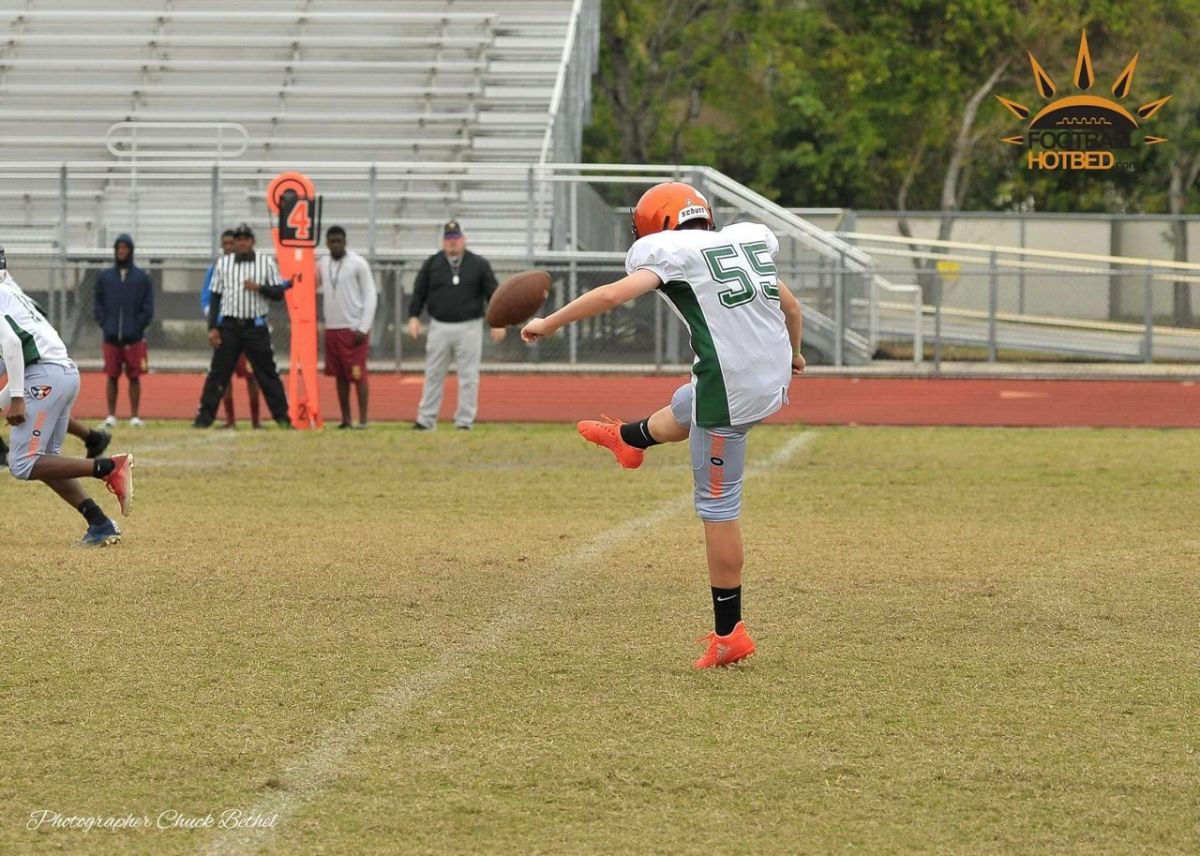 Have been a kicker/punter since 3rd grade (7 years old). Was a member of the Brevard County Youth Football League (BCYFCA) playing for West Melbourne my first 5 years and then the Melbourne Hurricanes my last 2 years. Currently playing high school for the Holy Trinity Episcopal Academy Tigers located in Melbourne, FL.