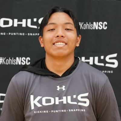 Inocencio competed at the 2025 Kohl's National Scholarship Invitational and had a consistent day of charting. He made 10 field goals during the event and finished with a 100.62 kickoff score. His best kickoff traveled 65 yards with 3.94 seconds of hang time, showing solid lift and control. Inocencio is positioned well for a strong senior season. Inocencio competed well at the 2025 Kohl's Western Showcase Camp in May. He scored 7 points on field goals and showcased improved technique. Inocencio scored 101.50 points on kickoffs and showed off improved leg speed and strength. He connected on a 69-yard kickoff with 3.47 seconds of hang time. Continued hard work in the weight room will continue Inocencio on this upward trajectory. Inocencio came out to the 2024 Kohl's National Scholarship Camp. He had another solid performance. He scored 15 points on field goals and 90.05 on kickoffs. Inocencio has worked hard on his field goal technique over the last few months and he showcased smooth mechanics throughout the weekend. His best kickoff was a 63-yard ball with 3.28 seconds of hang time. Continued efforts on his technique will keep him on this upward path. Inocencio competed at the 2024 Kohl's Western Showcase Camp in May. He had a good day and earned a 4-star ranking at his first ranking camp. Inocencio scored 4 points on field goals and excelled during the drill work portion of camp. Inocencio scored 95.40 points on kickoffs. His big ball traveled 60 yards with 3.58 seconds of hang time. Inocencio has above-average leg speed for his class. Continued efforts on repeatability and flexibility will allow Inocencio to blossom.