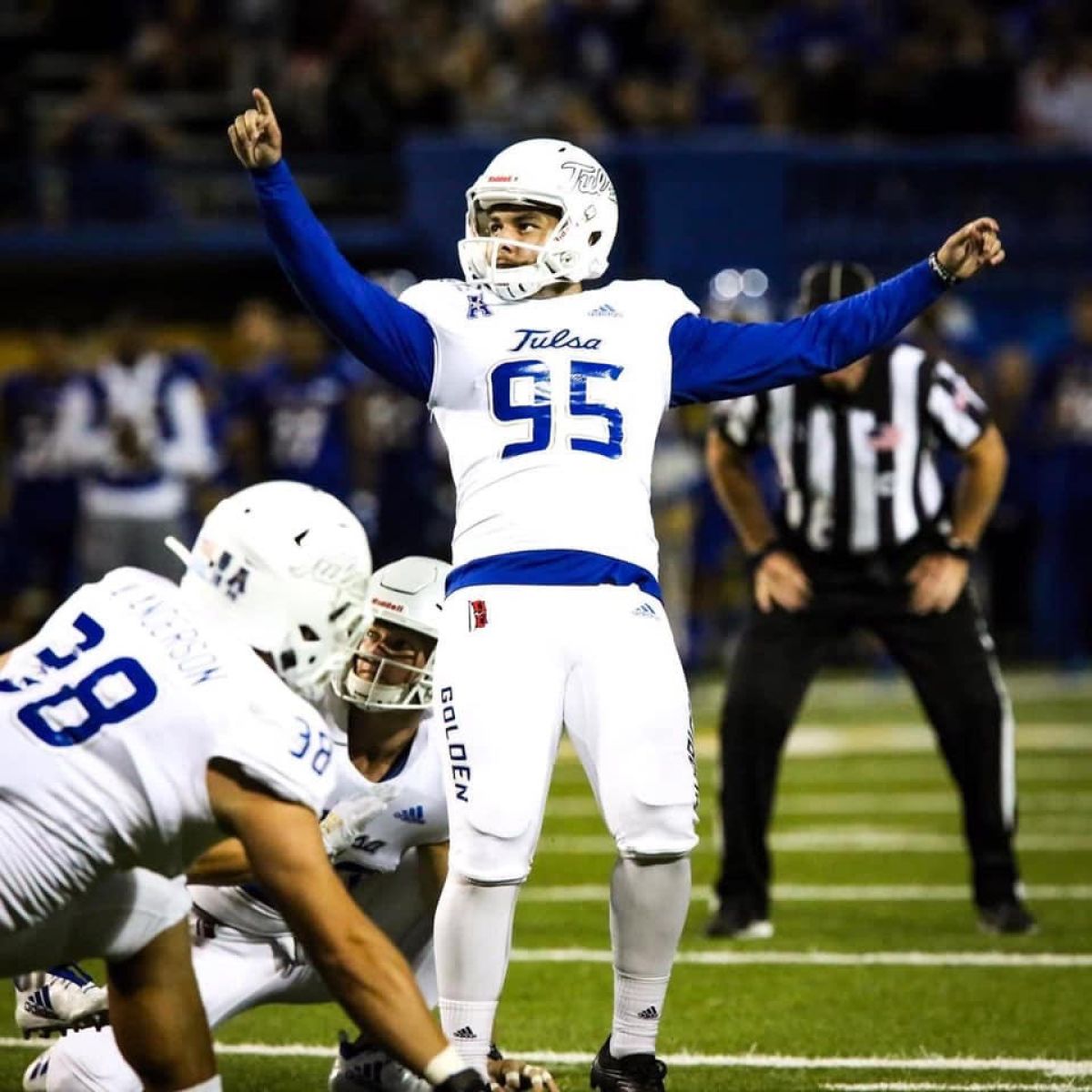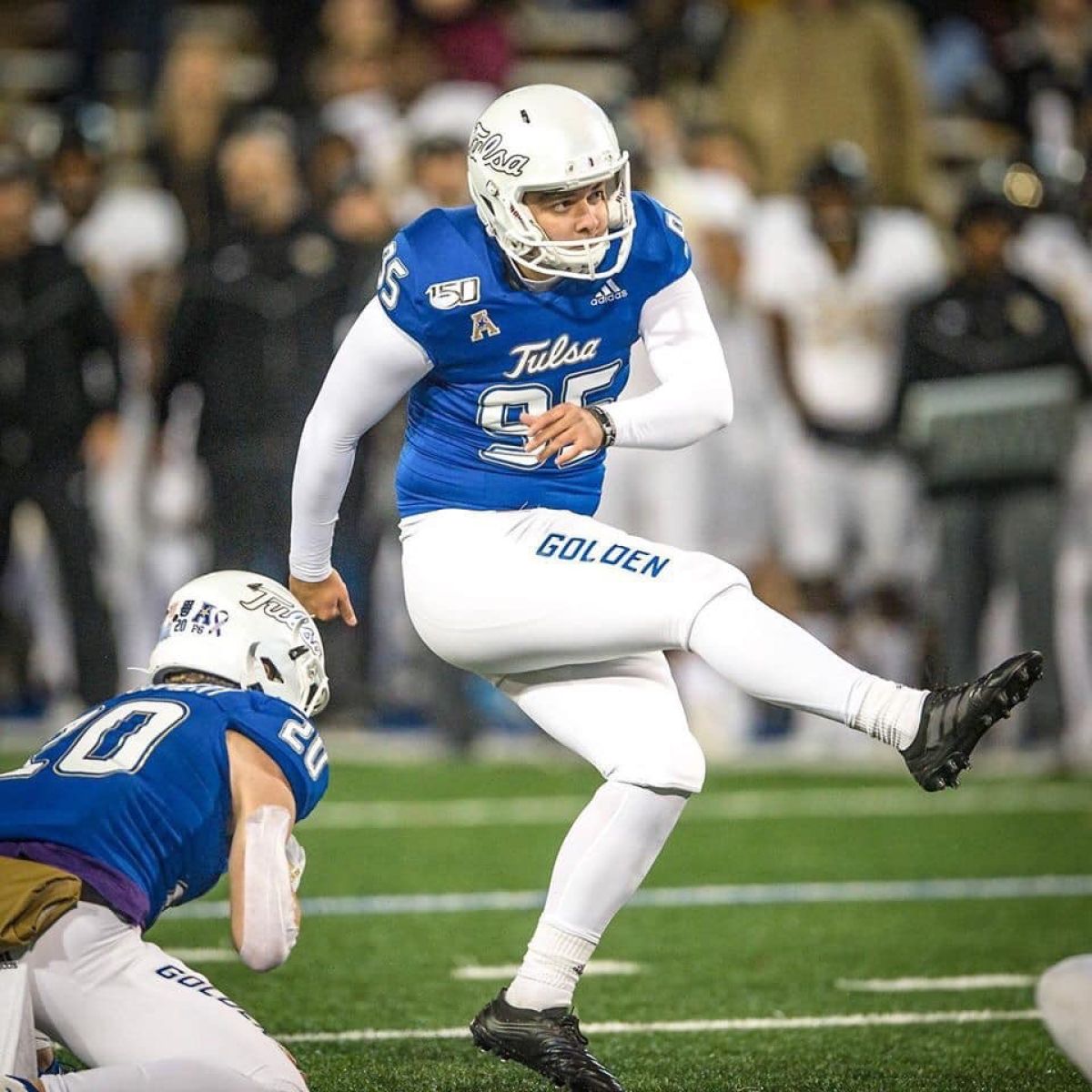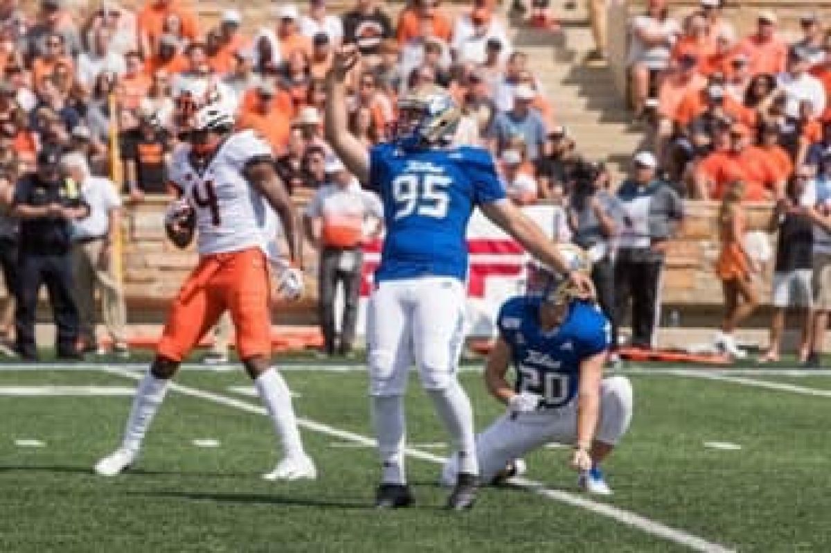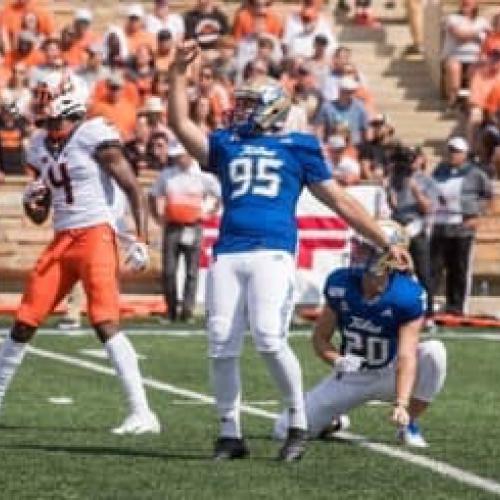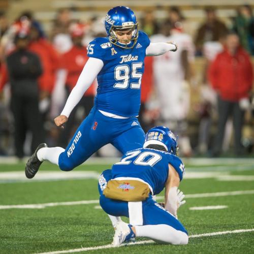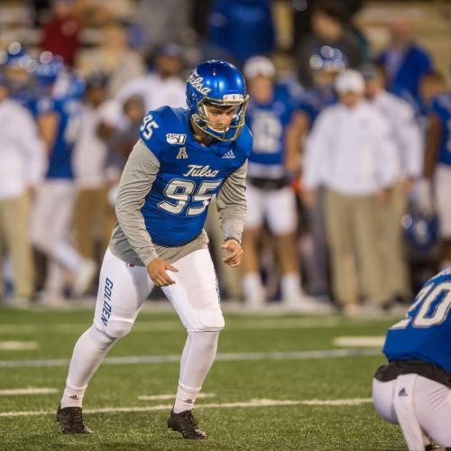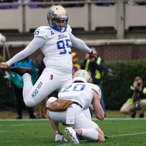 • 2019 University of Tulsa Hurricane Place-Kicker (Redshirt Freshman) #95 - Scoring Leader on team with 82 points; Went 4 for 4 on FGs against Tulane; During UFC game, made 14th FG setting new record with most FGs in a season for a Freshman in TU history and made 15th FG that resulted in 34 to 31 win