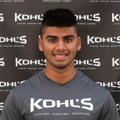 Patel's most recent camp was a 2021 May Showcase. He did very well in the field goal charting phase at camp. At Kohl's National Scholarship Camp in July of 2020 he scored 28 points on FG's and had a KO score of 106.73! His kickoffs are solid for a rising senior in high school. Patel is one of the cleanest ball strikers in his class and the drill work at multiple camps demonstrate that. Patel has good leg speed and a dependable leg swing. If he can continue to develop athletically in the coming months he will draw the interest from multiple D1 programs.