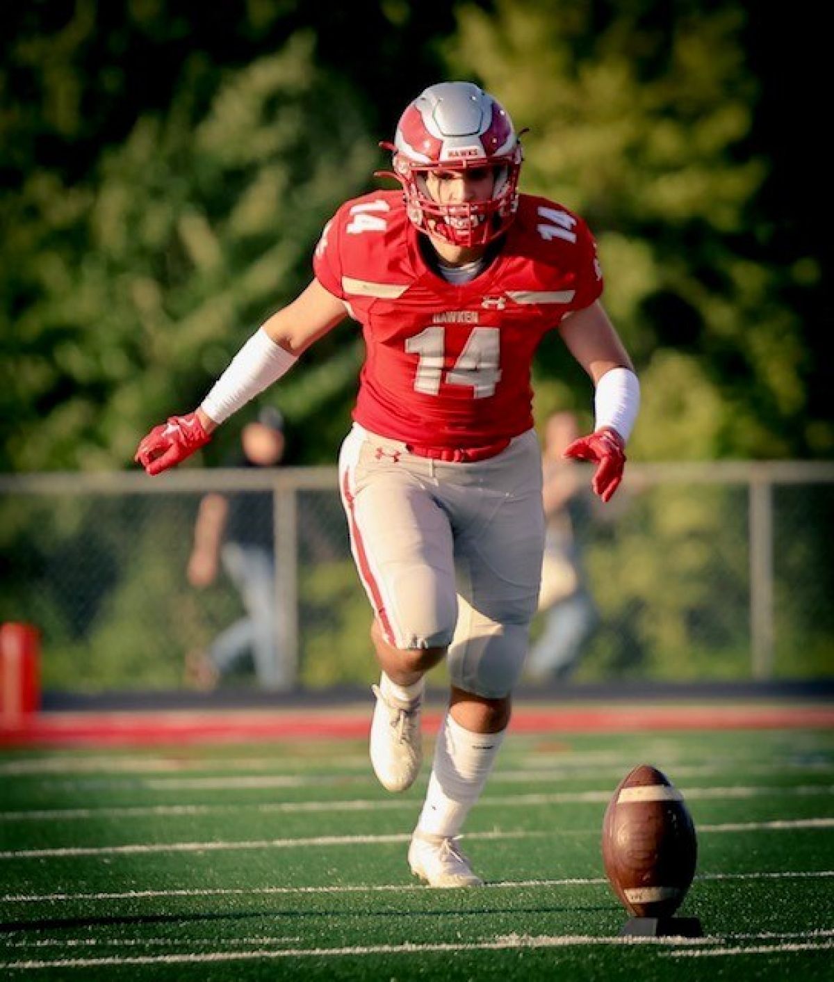 I play Kicker, Punter, CB, and WR positions each week. I start as the K, P, CB. I'm on the field the majority of every game, so my endurance is high. I'm very versatile and always willing to play any position my coaches need to help my team.