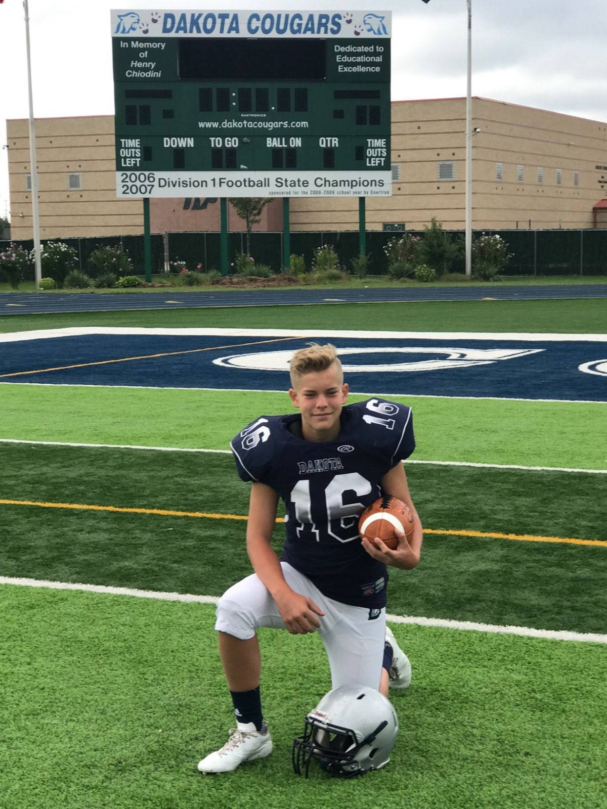 I love football and have great passion for kicking / punting. I am the primary kicker / punter and back up QB for my Dakota Cougar JV football team. Pulled up to Varsity for State playoffs. My dream is to kick for my college football team.