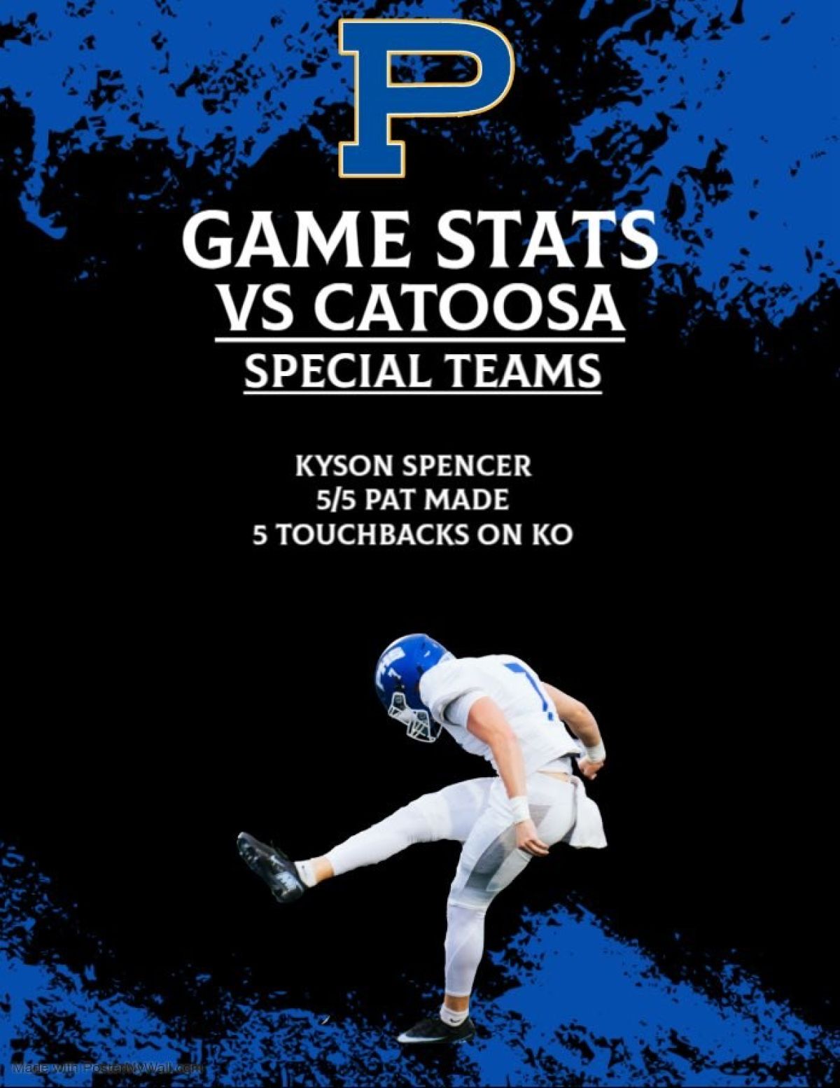 After my junior year a college in OKC invited me to a kicking camp. I attended the camp and outshined all my competitors, kicking the ball with more power and more accuracy. I was asked to attend the National Scholarship Camp in Gatlinburg, Tennenese. This is a National Camp hosted every year to top ranked prospects of the nation for kicking. I was very excited to be given this opportunity. At this camp, I was ranked a 4 star kicker from Oklahoma! Rolling into my senior year, I'm ready to show off my hard work, dedication and determination to push through all the struggle.