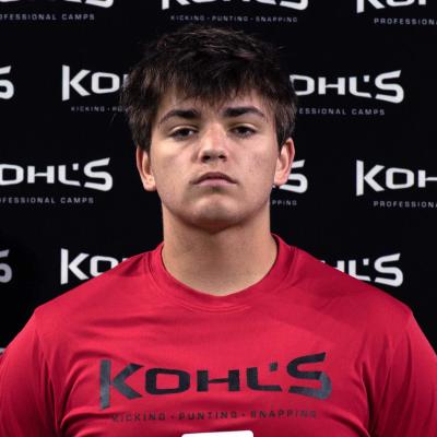 Lala delivered a consistent performance at the 2025 Kohl’s National Scholarship Camp, averaging .80 seconds per snap. He was able to score on 8 of his first 10 charted long snaps and was consistently around the target throughout the day. Lala showed solid mechanics and a smooth release. Staying focused on keeping his balance and driving through his target will help him continue to improve and reach his full potential.