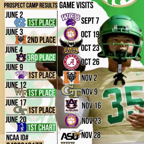 • <As a PUNTER> 5th Place Clemson Camp (punted 50 yd 4.4 hang) 6/4/25