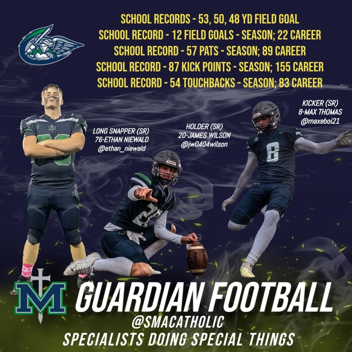 • 2025 - School record 53yd Field Goal 10/17