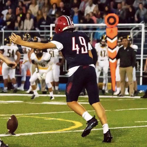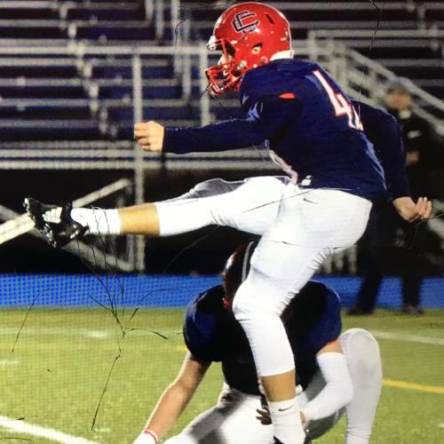2019: Handled varsity kicking duties, wearing #1, converted 35/39 PATs (3 blocks) , 4/8 FGs & 16/54 KOs for touchback. Third in team scoring with 47 points. Helped team to a 9-2 record, MVC League Championship & appearance in D1 North state finals. Was pulled early at times due to playing whole season with bone stress injury while losing long snapper for three games and holder for season after 3rd game. Season Highlight - kicked career long 42 yd FG & converted 4/4 PATs in OT win over Everett HS in D1 North Semi Finals. Participated in Kick It For Cancer fundraiser for first time raising over $1,000 for childhood cancer.