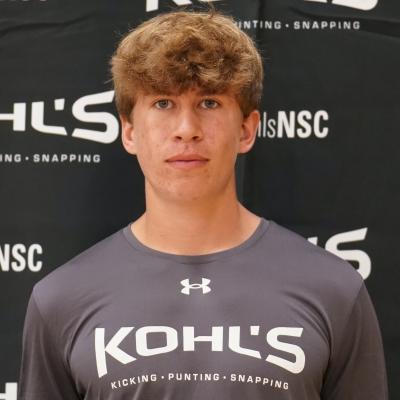 Warrick competed at the 2024 Kohl's National Scholarship Camp. He had a strong weekend, scoring 15 points on field goals and 91.85 points on kickoffs. Warrick's technique on both field goals and punts is very repeatable. His best kickoff was a 63 yards with 3.37 seconds of hang time. Continued efforts on weight training and explosiveness will keep Warrick on this upward trajectory. Warrick came out to the 2024 Kohl's Future Stars Camp in January. He had a good weekend and earned another 1/2 star. He scored 4 points on field goals and showed growth in his mechanics during the drill work portion of camp. Warrick posted a score of 92.30 on kickoffs with a big ball of 59 yards with 3.34 seconds of hangtime. Warrick has worked hard to improve his leg strength, and continued efforts will help him have a great season. Warrick recently competed at the 2023 Kohl's Eastern Winter Showcase. Here he was able to score 7 points on the field goal session. Warrick showed good command of the football during the kickoff charting, ending with an overall score of 89.4. His standout ball measured a distance of 59 yards with a hang time of 2.99 seconds. Warrick also competed at the 2023 Kohl's National Showcase camp. Here he was able to score 14 points on the field goal charting. During the kickoff section he put up an overall score of 87.1, with his big ball being 55 yards with a hang time of 3.64 seconds. Warrick had a majority of his balls above the 50-yard mark. Next year will be a big year for Warrick, it will be fun to continue to watch his development.