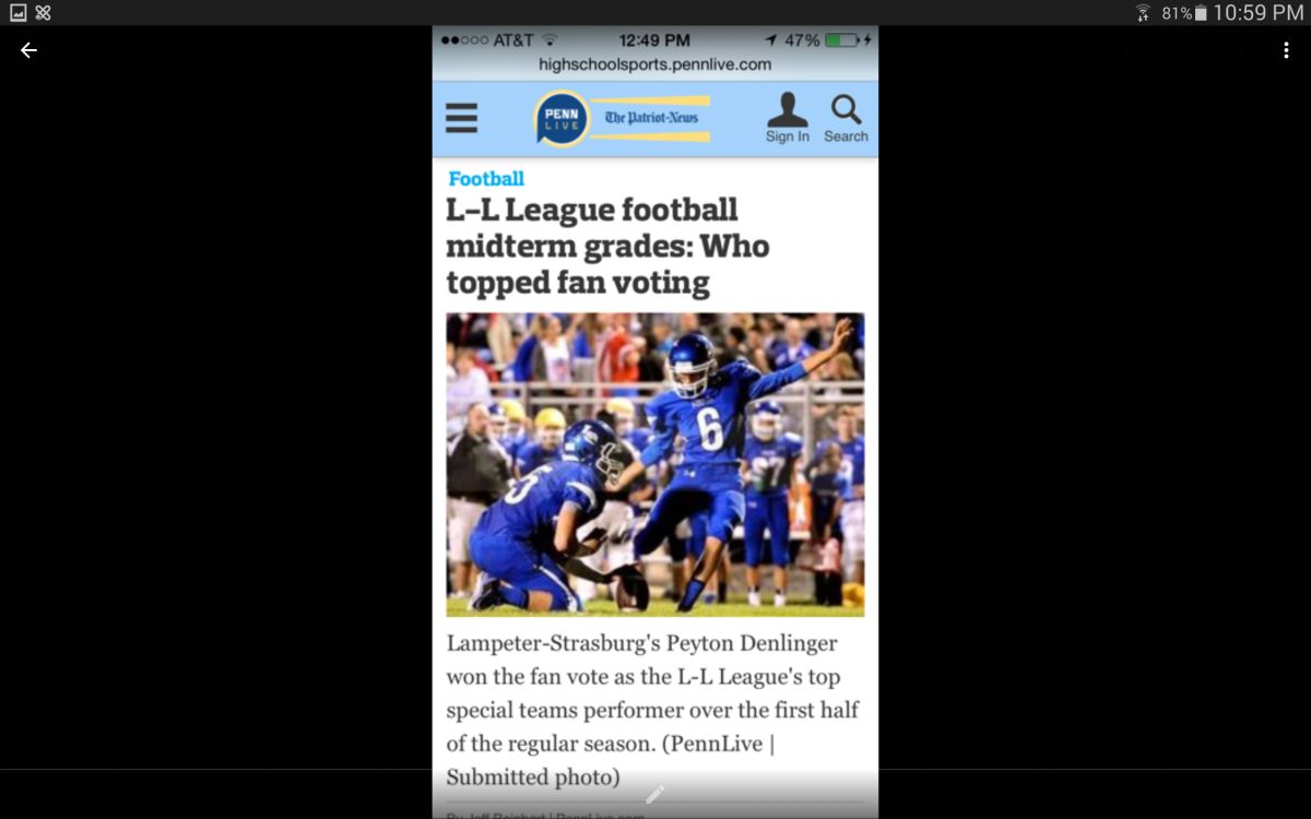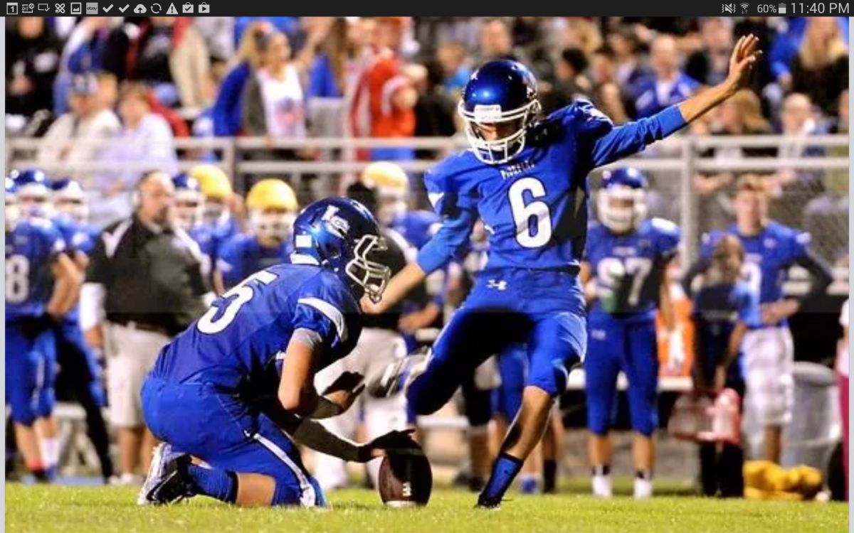 I am a well rounded athlete. As a FRESHMAN (14 years old) I was the starting center midfielder on the HS Varsity Soccer team. Named as an ALL- star candidate as a freshman. I was also the Starting varisty kicker for the 2014- LL Sec. 2 Champ LS football team in Lancaster Pa.. I was voted to the All-star team freahman year- honerable mention. It was a great first year, and playing football/Kicking is becomming my first true passion. I also excel in basketball. But eventually more and more time will be dedicated to kicking so that a scholarship potential becomes more possible. That is the goal.