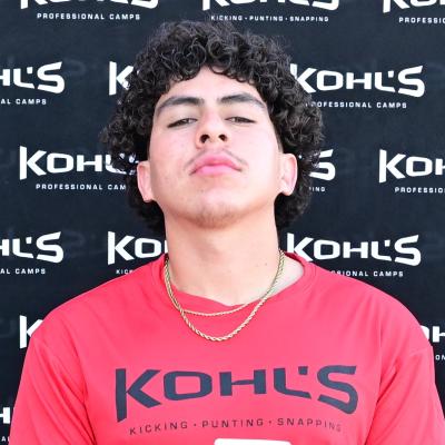 Villa Arzate participated in the 2025 Kohl’s Western Spring Showcase. He connected on eight field goals and was great on kickoffs, earning a 111.10 score. His best ball was a booming 78-yard kick with a 3.65-second hang time, showing elite-level leg strength. Villa Arzate’s combination of power and consistency makes him a high-level kicking prospect with significant potential at the next level. Villa Arzate recently competed at the 2024 Kohl's Western Spring Showcase. He had an excellent showing for his first ranking event. He competed in field goals and kickoffs at camp and produced some solid scores. He has a quick leg and is consistent with his ball/foot contact. He scored 8 points in the field goal charting and produced a score of 105.75. His biggest charted kickoff was 69 yards with 3.68 seconds of hang time. His lift and power on kickoffs is excellent.