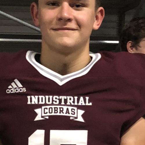 As a freshman, I played freshman football at Industrial during the 2019 season. My outstanding performance led me to being promoted to the varsity team as they entered the playoffs. I went 6 for 6 in my first varsity football game for the Cobras.