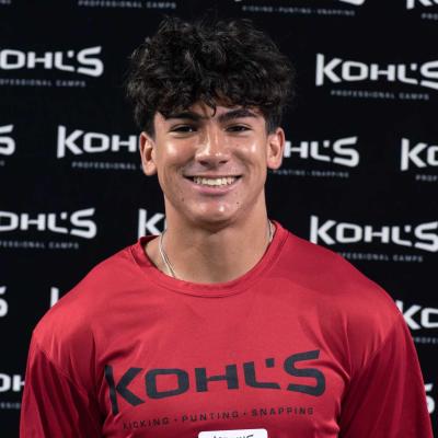 The 2025 Kohl's Texas Winter Showcase in Dallas saw Ryan Carmona perform well across both charting and competition rounds. He totaled 13 points during the field goal charting session and achieved 101.7 points in kickoff charting, with a best ball measuring 68 yards and 3.6 seconds of hang time. At the 2025 Kohl’s National Scholarship Invitational, he scored 96.5 in kickoff charting, with his best kickoff reaching 60 yards and 3.7 seconds. Carmona also excelled at the 2025 Kohl's Texas Spring Showcase, successfully converting 10 field goals and achieving a kickoff score of 105.95, highlighted by a 70-yard kick with a hang time of 3.7 seconds. His consistent technique and powerful kicks indicate a bright future ahead. Overall, he demonstrated well-rounded traits at the event, showcasing growing strength and improving consistency.
