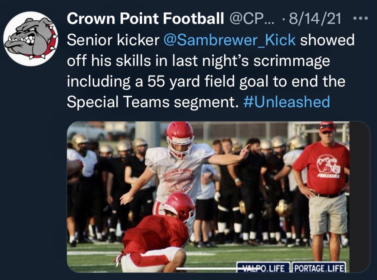Samuel Brewer is interested in studying chemistry and kicking for any level of college football. His proudest moment kicking is a game against regional rival Merrillville where he scored three field goals, one in overtime, to keep his team competitive against one of the top teams in the state. Samuel is the sports editor of the high school paper, and he is one of the top students in his class, currently on a path to graduate summa cum laude. He has also played club soccer as a goalie at the Academy level, and his club team is consistently one of the top teams in Indiana.