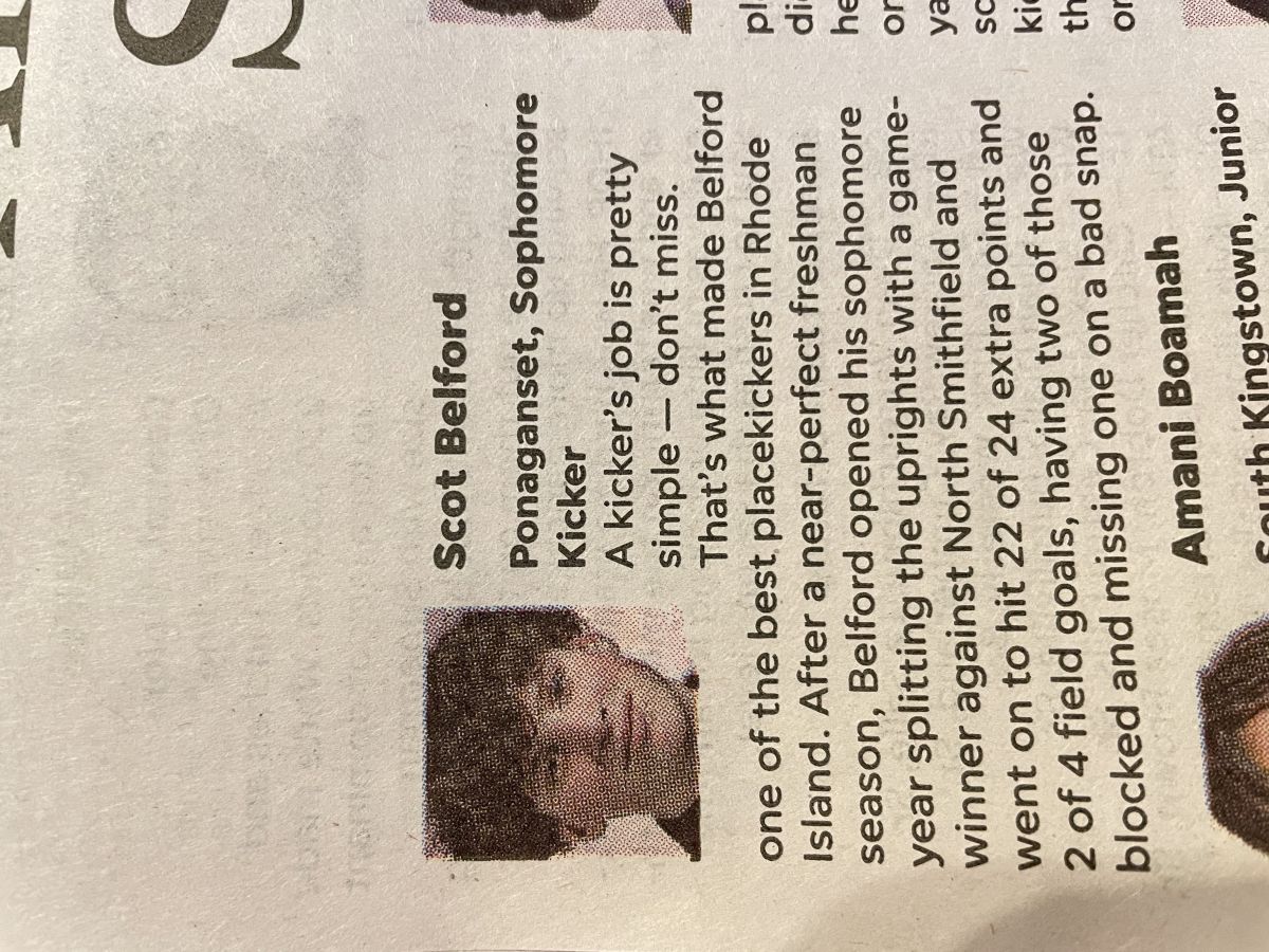 Belfrod recently attended the 2024 Kohl's National Scholarship Camp. He showed solid ball striking skills and created excellent lift on his "A" ball. He scored 14/36 possible points in the field goal charting. He commands his tempo well on his kickoffs and he produced an overall score of 90.18 in the kickoff charting. Engaging the quad more on his leg swing should help him create more hang/distance on his kickoffs. His biggest charted ball at camp was 60 yards with 3.57 seconds of hang time. Belford competed at the 2024 Kohl´s Eastern Spring Showcase. Here he had a good performance showing good rotation of the football putting up 9 points on the field goal session. During the kickoff charting, Belford finished with an overall score of 94.15. He was able to send his big ball a distance of 62 yards with a hang time of 3.23 seconds. Belford has the talent to play at the college level, this next season will be a big year for him! Belford also attended the 2023 Kohl's Eastern Winter Showcase.