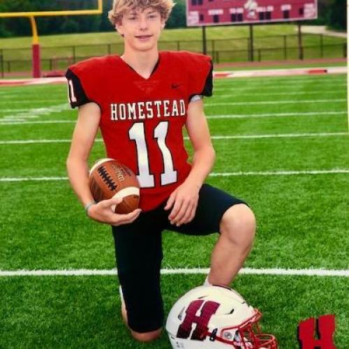 I was born in Mequon, Wisconsin in 2005 and am the fifth child of Mark and Maura West. I played youth football in the Mequon/Thiensville Cardinal program in Division 1 of the Wisconsin All America Youth Football League. Tom Price was my coach all four years, and I was quarterback, defensive end, linebacker, and kicker/punter. I currently play for Homestead High School in Mequon, where I'm coached by Drake Zortman (Head Coach), Micah Adams (Special Teams), and Tom Price (Kicking). This season (2023), I am kicker/punter, wide receiver, and backup quarterback for the Varsity. Last season (junior), I was fortunate to earn 1st Team All-Conference honors at kicker and punter, All-Region and Honorable Mention All-State recognition at punter, and Special Teams MVP for my high school team. During my sophomore season (2021), I was kicker/punter on the Varsity and quarterback, kicker/punter for the Junior Varsity. I was named All-Conference Honorable Mention at kicker/punter, Our Varsity lost a close game that year in the Wisconsin Division 2 State Championship. In addition to football, I play ice hockey and lacrosse for my high school.