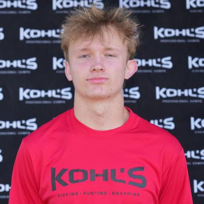 Barker attended Kohl’s National Scholarship Camp in July of 2025. At camp he scored 108.82 points on kickoffs and 24 points on field goals at camp. He showed he has college potential as a kicker and is on the same path his brother was on to develop late into his hs career! Barker also competed at the 2025 Kohl's Eastern Spring Showcase and turned in a strong performance. He made 7 field goals during the charting session and earned a kickoff score of 109.35. His best kickoff traveled 73 yards with 3.66 seconds of hang time, showing excellent leg strength and clean ball striking. Barker has the tools to continue progressing at a high level and should be a prospect to keep an eye on. Barker participated in the 2025 Kohl's Future Stars Camp. He made 5 field goals during the event and earned a kickoff score of 100.00. His standout ball traveled 66 yards with a hang time of 3.65 seconds, showcasing his ability to generate excellent power and hang time. Barker has demonstrated solid potential and with continued focus on development, he can further elevate his kicking game. Barker competed at his first ranking event, the 2024 Kohl's Eastern Winter Showcase. He had an impressive showing at camp and showed excellent power and refinement throughout the event. His overall kickoff score was 102.05 which included a big ball of 64 yards with 3.96 seconds of hang time. He scored 9 points in the field goal charting and smashed some kicks during the drill work portion of camp. His long levers and powerful hips allow him to create excellent lift on his kicks.