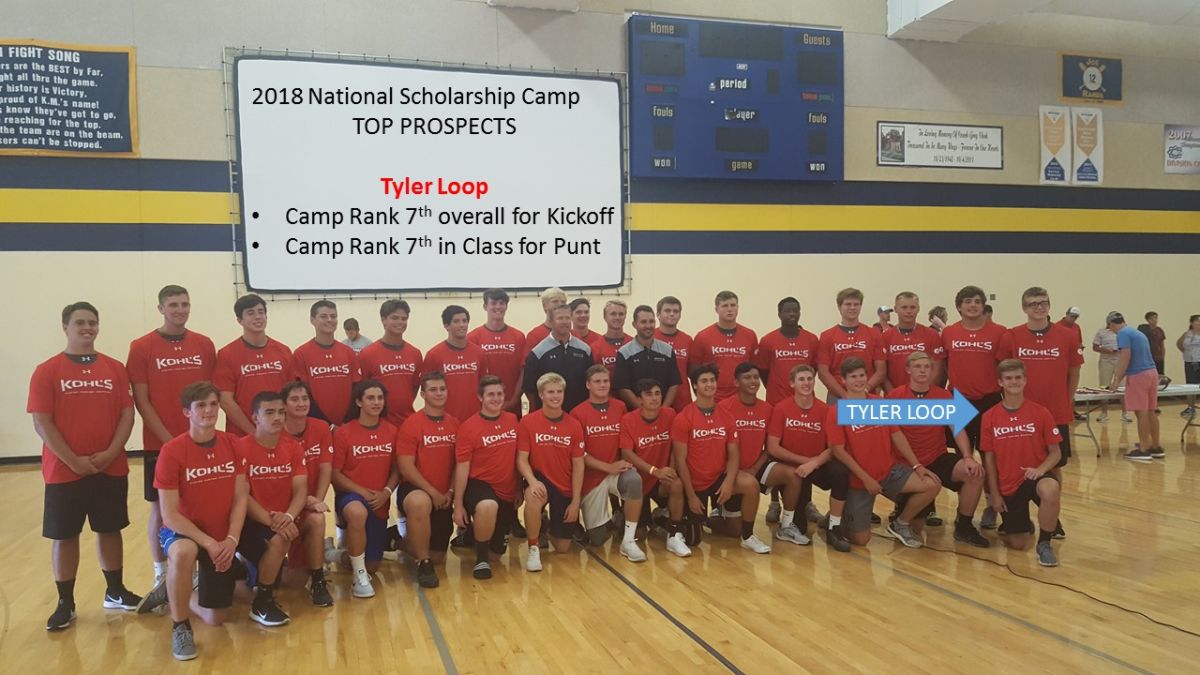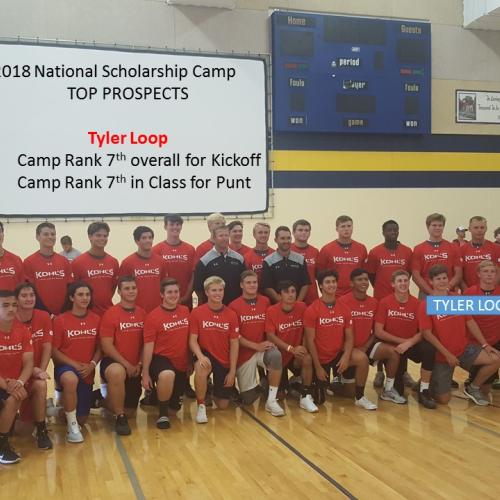 Loop recently attended the Kohl's 2019 National Scholarship Camp in July of 2019. He is one of the most refined field goal kickers in the country. He has the talent to play at a top Division 1 college and this upcoming year. In December Loop won the field goal and kickoff portion of the Texas Showcase. His ball striking was outstanding. In July of 2018 Loop charted an 82-yard, 3.7 second kickoff at camp with a tailwind. He also scored 24 points during the field goal portion of the Kohl's National Scholarship camp in July of 2018. Loop is a solid D1 kicker and will compete early in his career in college!