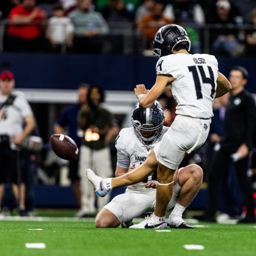 Olson recently kicked and punted at Kohl’s National Scholarship Camp. He scored 25 points on field goals, 104.8 points on kickoffs, and 102.99 points on punts at the camp in July of 2025. Olson showed the leg strength and overall consistency needed to play in college as both a kicker and punter. Olson also competed at the 2025 Spring Ranking Event and scored 8/15 points on field goals, 100.7 points on kickoffs, and 100.21 points in punting. He also won two competitions at camp and showed he is ready to impress college coaches this summer. At the 2024 Kohl's National Scholarship Camp in July. He scored 91.29 points in punting, 24/36 points on field goals, and 101.65 points on kickoffs. Olson scored 91.29 points on punt charting with a big ball of 46 yards with 4.31 seconds of hang time. He also competed at the 2024 Kohl's Midwest Spring Showcase. He has made drastic improvements with his leg strength and his punting form. He scored 10/15 points in the field goal charting and produced 97.55 points in the kickoff charts. His punt score was 94.05 points and he connected on a couple of great roll-out punts at the camp. His biggest charted punt at camp was 46 yards with 3.94 seconds of hang time. Olson had a strong overall showing at the 2023 Kohl's National Scholarship Camp. It was his first ranking event and he competed in all three disciplines at the event. His combined total of points on field goals was 19 and he connected with a big ball of 60 yards with 3.64 seconds of hang time. He has good command of his body and creates excellent lift on his field goal attempts.
