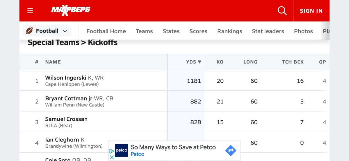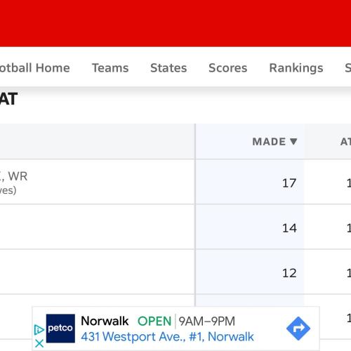 Game Date FGM/ FGAFGD XPM/ XPA #Avg.Inside 20 # TBs SS/ SA